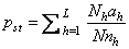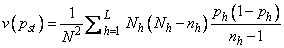 Let Nh be the number in the population in the h-th stratum, let nh be the number in the sample from the h-th stratum, let ah be the number of the class of interest in the sample from the h-th stratum, let N be the population size (Σ Nh), let ph be the proportion in the h-th stratum, ah/nh, and let L be the number of strata. Then, the estimate of the proportion is