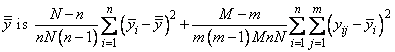 Routine SMPST computes point and interval estimates for the population mean and total from a two-stage sample with primary units that are all equal in size. A two-stage sample might be taken if each unit (primary unit) in the population can be divided into smaller units. Primary units are selected first, and then those selected are subsampled. The routine uses the standard methods discussed in Chapter 10 of Cochran (1977). The sample means for the individual primary units are accumulated in PUMEAN, and the corrected sums of squares are accumulated in PUVAR. In the postprocessing phase, the quantities in STAT are computed using the primary unit statistics. The parameters IDO and NOBS allow either all or part of the data to be brought in at one time.