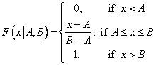 The function UNDF evaluates the uniform cumulative distribution function with location parameter A and scale parameter (B – A). The function definition is