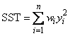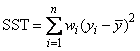 In the case an intercept is indicated (INTCEP = 1), the total sum of squares is the sum of squares of the deviations of yi from its (weighted) mean
