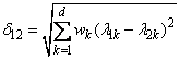 Note that the predicted distances between objects may not be Euclidean distance. Indeed, in one of the more popular multidimensional scaling models, the individual differences model, weighted Euclidean distance is used. Let l1k and l2k, k = 1, … ,d, be the location estimates of two objects (stimuli) in a d dimensional space. Then, the weighted Euclidean distance used in the individual difference model is given by