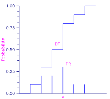 where A is the set such that k ≤ x. The “DF” routines in this chapter evaluate cumulative distribution functions. Since the distribution function is a step function, its inverse does not exist uniquely.