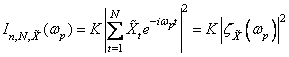 Cross Periodogram. The cross periodogram of the sample sequences {Xt} and {Yt}, t = 1, , n computed with the padded sequences