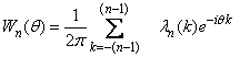 Spectral Window. The following spectral windows Wn(θ) are available in routines containing the argument ISWVER.