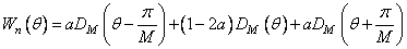 for 0 < a ≤ 0.25, where DM(θ) represents the Dirichlet kernel. The Tukey-Hanning window is obtained when a = 0.23, and the Tukey-Hamming window is obtained when a = 0.25.