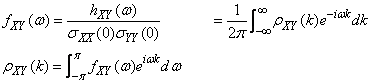 ρXY(k) = σXY(k)/[ σXX(0)σYY(0)] form a Fourier