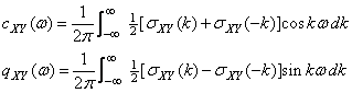Then, the nonnormalized cross-spectral density hXY(w) and the cross-covariance function σXY(k) form a Fourier transform pair. The relationship in the continuous-parameter case is given by