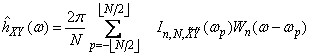 An algebraically equivalent method of estimating hXY(ω). consists of locally smoothing the modified cross periodogram in a neighborhood of ω. Let
