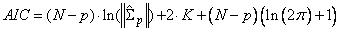 where m = number of univariate time series, and p = maximum number of lags in the AR model. The equivalent multivariate AIC calculation is