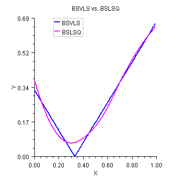 The routine BSVLS returns the B-spline representation of the best fit found by the algorithm as well as the square root of the sum of squares error in SSQ. If this answer is unsatisfactory, you may reinitialize BSVLS with the return from BSVLS to see if an improvement will occur. We have found that this option does not usually (substantially) improve the result. In regard to execution speed, this routine can be several orders of magnitude slower than one call to the least-squares routine BSLSQ.