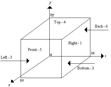 on the domain (ax, bx) (ay, by) (az, bz) (a box) with a user-specified combination of Dirichlet (solution prescribed), Neumann (first derivative prescribed), or periodic boundary conditions. The six sides are numbered as shown in the following diagram.