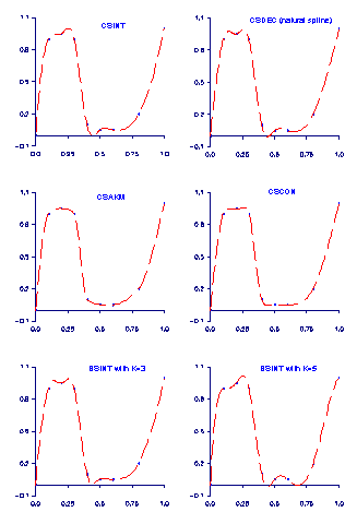 It is possible that the cubic spline interpolation routines will produce unsatisfactory results. The adventurous user should consider using the B-spline interpolation routine BSINT that allows one to choose the knots and order of the spline interpolant.