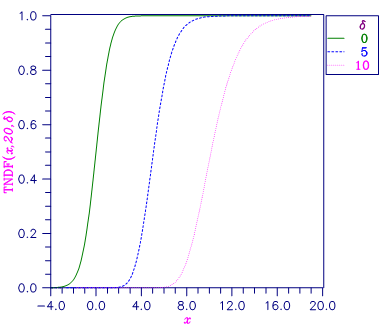 TNDF — Function value, the probability that a noncentral Student's t random variable takes a value less than or equal to T. (Output)