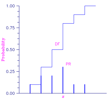 where A is the set such that k ≤ x. The “DF” routines in this chapter evaluate cumulative distribution functions. Since the distribution function is a step function, its inverse does not exist uniquely.