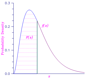 For continuous distributions, a probability function, as defined above, would not be useful because the probability of any given point is 0. For such distributions, the useful analog is the probability density function (PDF). The integral of the PDF is the probability over the interval, if the continuous random variable X has PDF f, then
