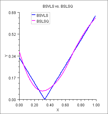 The routine BSVLS returns the B-spline representation of the best fit found by the algorithm as well as the square root of the sum of squares error in SSQ. If this answer is unsatisfactory, you may reinitialize BSVLS with the return from BSVLS to see if an improvement will occur. We have found that this option does not usually (substantially) improve the result. In regard to execution speed, this routine can be several orders of magnitude slower than one call to the least-squares routine BSLSQ.