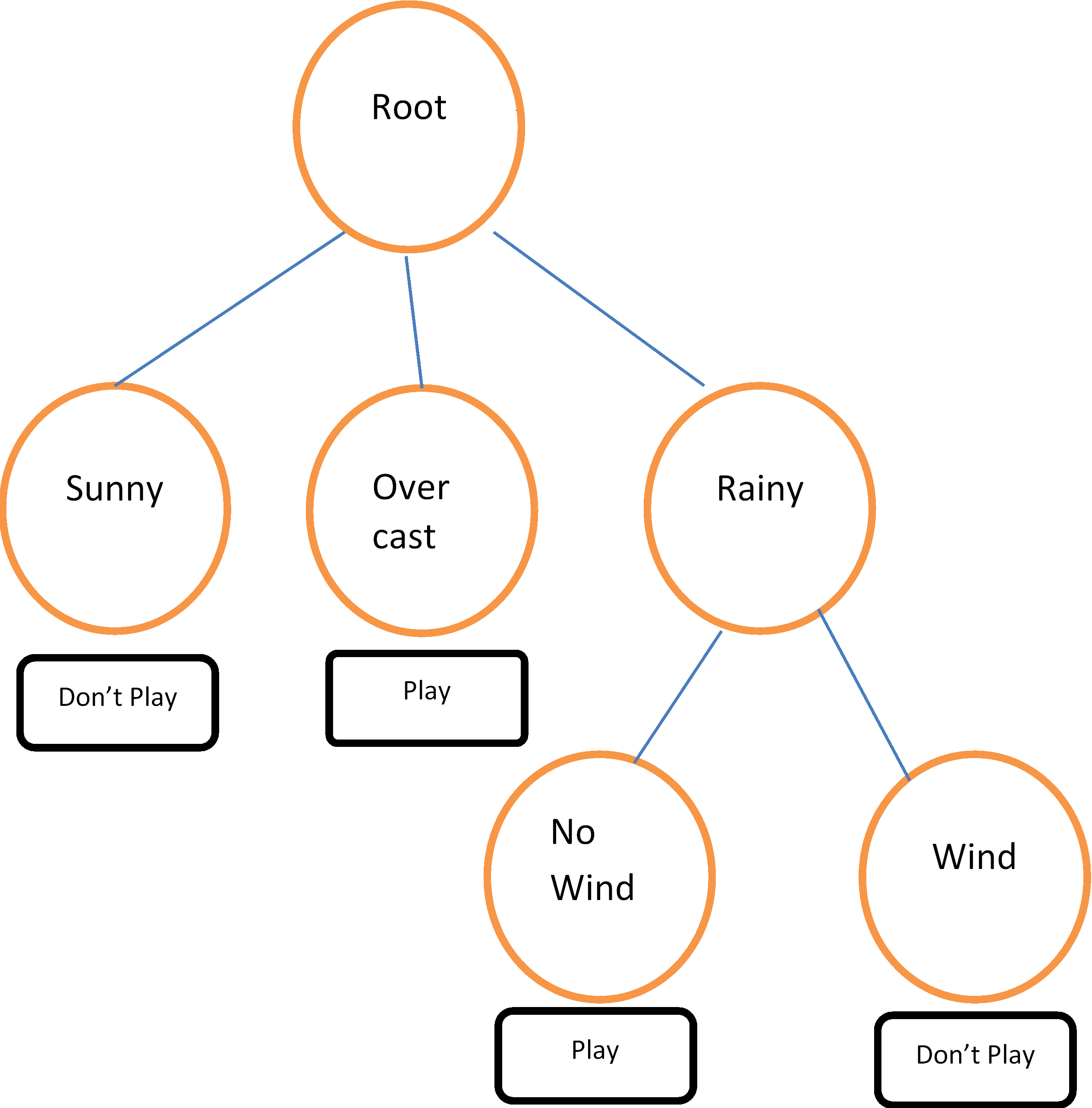 For example, the decision tree in Figure 1 can be expressed as a set of rules: If the weather is sunny, don't play golf. If the weather is overcast, play golf. If the weather is rainy and there is no wind, play golf. On the other hand, if it is rainy and windy, don't play golf.