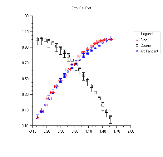 An ErrorBar chart is constructed in this example. Three data sets are used and a legend is added to the chart.