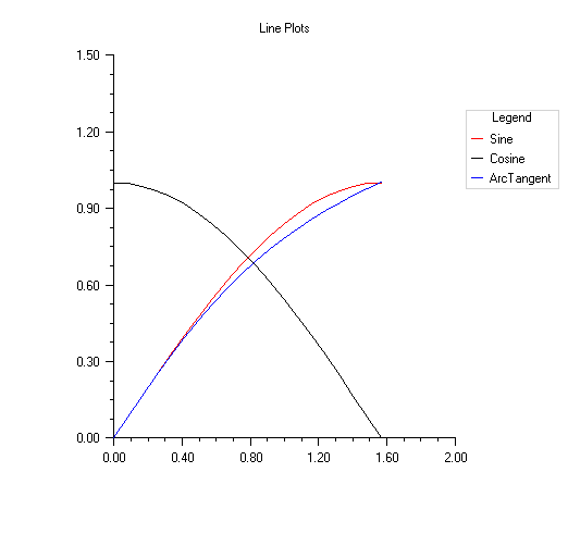 A simple line chart is constructed in this example. Three data sets are used and a legend is added to the chart.