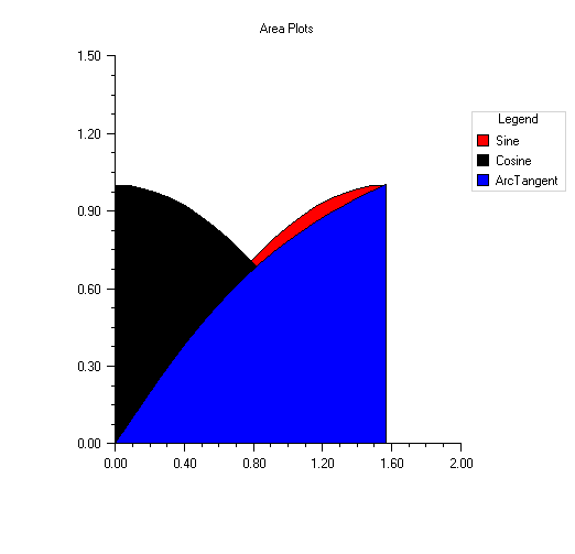 An area chart is constructed in this example. Three data sets are used and a legend is added to the chart.