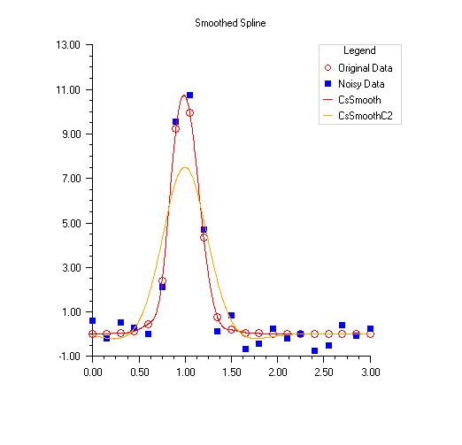 This example makes use of the SplineData class as well as the two spline smoothing classes in Imsl.Math .