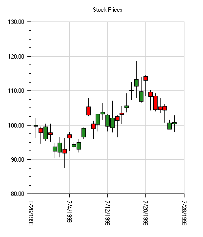 The body of a candlestick shows the stock’s opening and closing prices. The body color is used to flag if the top of the body is the closing price (up day) or the opening price (down day). The fill area attributes determine how the body is drawn (see Fill Area Attributes. By default, up days are white and down days are black.