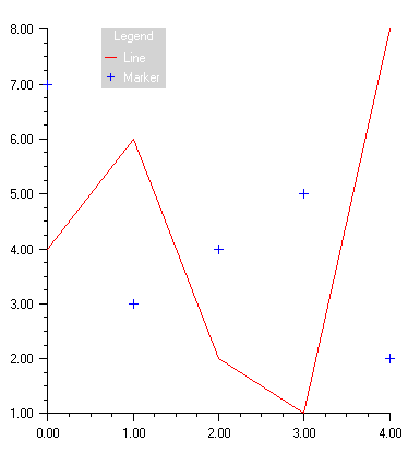 At a minimum, adding a legend to a chart requires setting the legend’s IsVisible property to true and setting the Title attribute in the Data nodes that are to appear in the legend box. This example shows such a minimal legend.